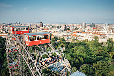 Selvfølgelig skulle Red Bull lave noget helt specielt som optakt til deres hjemmebaneløb. Ugen før løbet monterede man derfor en F1-racer på Wiens store ’pariserhjul’, Riesenrad på Prater. Man skal være lidt…skal vi sige ’kreativ’? for at finde på den slags.