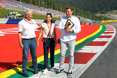 Søndag formiddag var Niki Laudas enke Birgit, hans søn Lukas og Red Bull´s F1-boss Helmut Marko tilstede, da det første sving på Red Bull Ring officielt skiftede navn til ”Niki Lauda Kurve”. I paddocken var der hele weekenden udstillet en af den østrigske legendes 1975-Ferrari´er.
