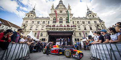 Graz, den nærmeste storby til Red Bull Ring, har nu en sporvogn udsmykket i energidrik-gigantens farver. I ugen op til Østrigs Grand Prix var Max Verstappen og Daniel Ricciardo på besøg i Graz, hvor de naturligvis fik en tur i ’deres’ sporvogn.