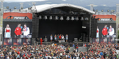 På Red Bull Ring har man også grandprix-koncerter. Men hvor man i Singapore og Abu Dhabi byder på navne som The Killers og Guns ´n Roses, var det i Østrig lokale navne som Gert Steinbäcker og Pizzara & Jaus, der stod øverst på plakaten..