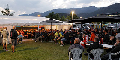 Grand Prix Tours hyggelige camp 45 meter fra Red Bull Rings hovedindgang dannede lørdag rammen om en af årets største Race Night. Le Mans-vinder John Nielsen og Red Bull-mekker Ole Schack dukkede op som gæstestjerner, og ’Danmarks Bedste Ekspertpanel’ svarede på masser af gode spørgsmålSuper-Mag!
